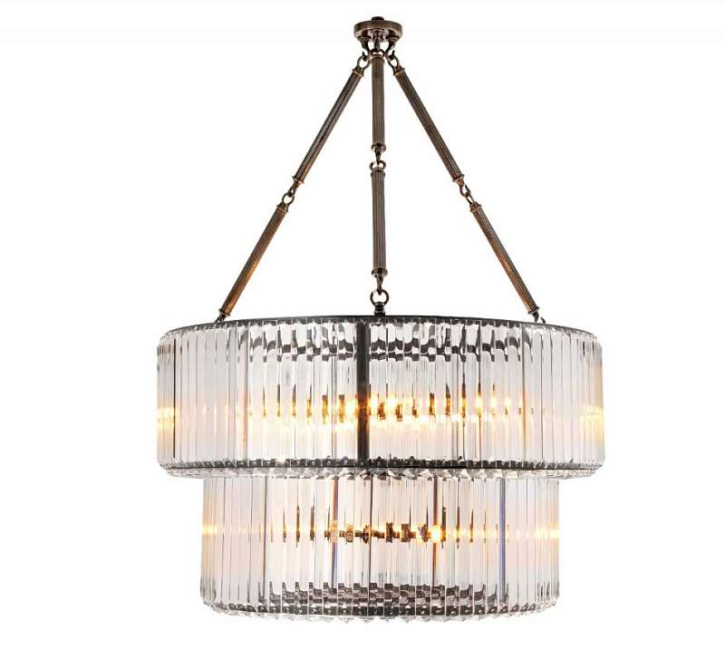Роскошная люстра с отделкой из бронзы и хрустального стекла. Вдохновленная винтажным очарованием подвесных люстр в стиле арт-деко, эта люстра излучает яркую привлекательность 1920-х годов.