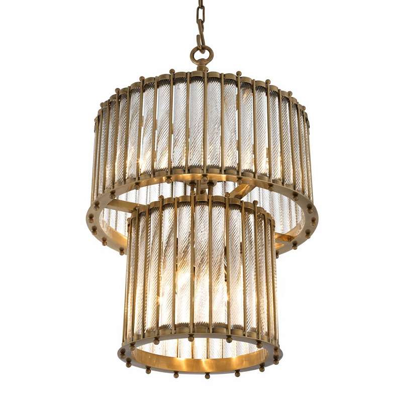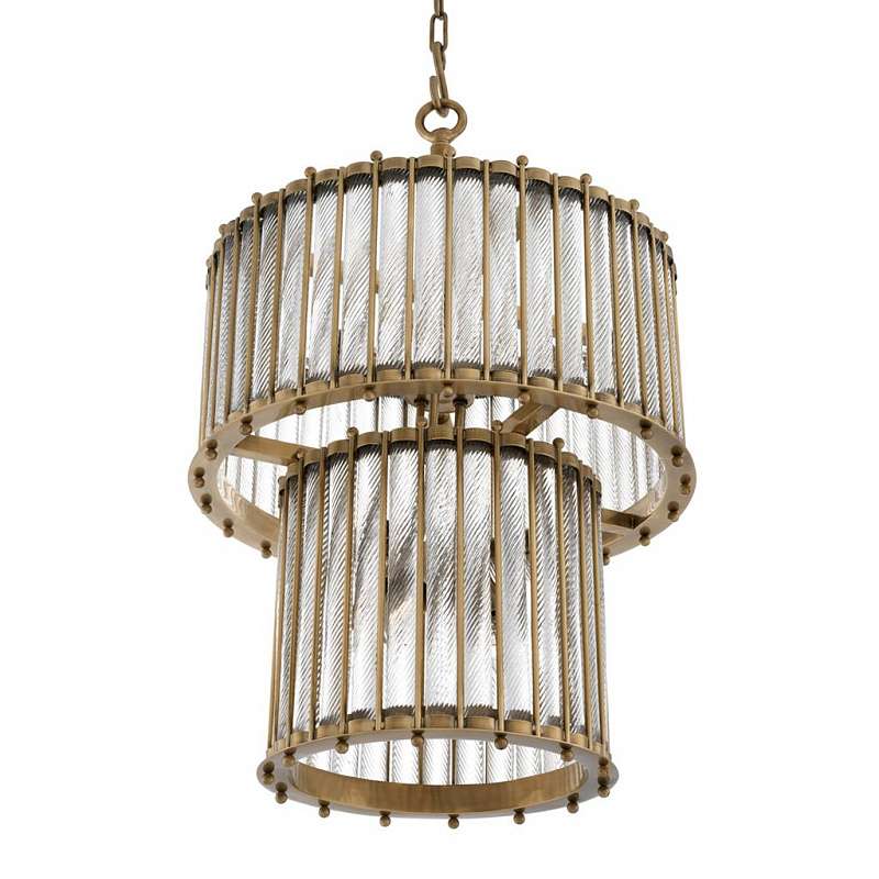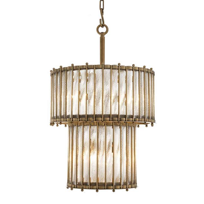 Изысканный подвесной светильник, сочетающий решетку и украшения в винтажном стиле с современным дизайном, излучает вневременную привлекательность. Абажур с античной латунной отделкой украшен стеклянными стержнями ручной работы.