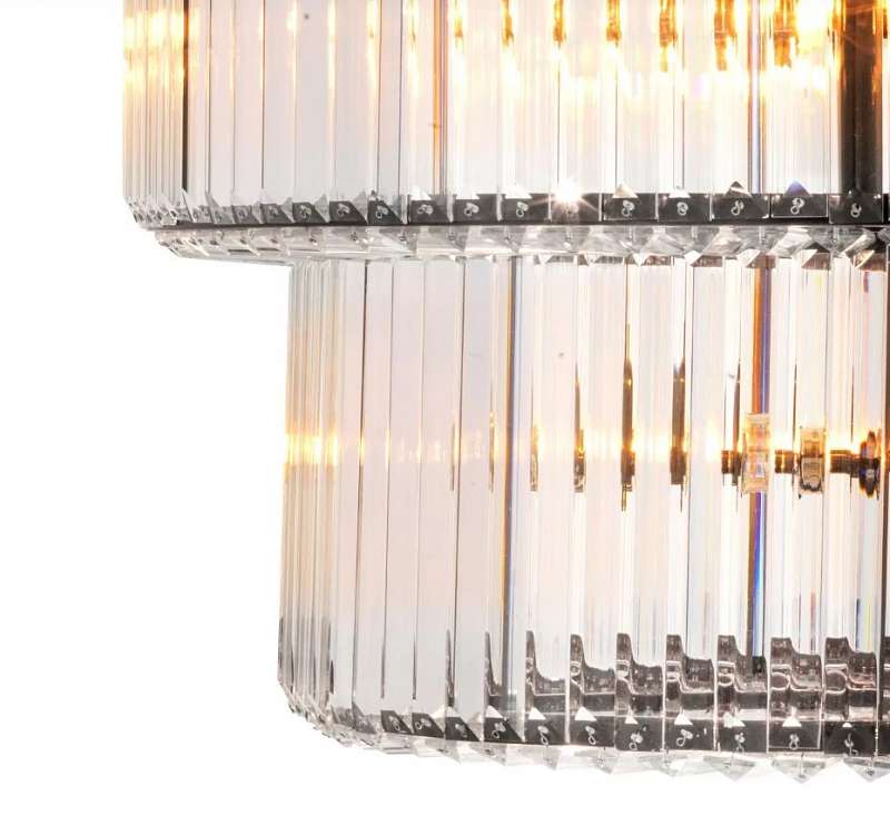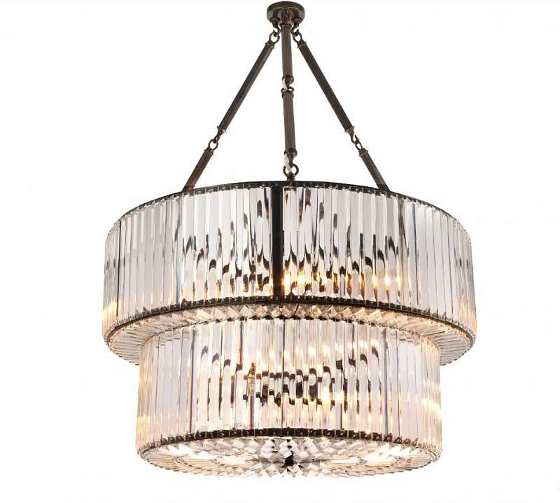 Роскошная люстра с отделкой из бронзы и хрустального стекла. Вдохновленная винтажным очарованием подвесных люстр в стиле арт-деко, эта люстра излучает яркую привлекательность 1920-х годов.